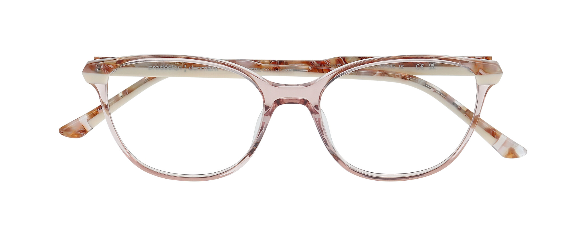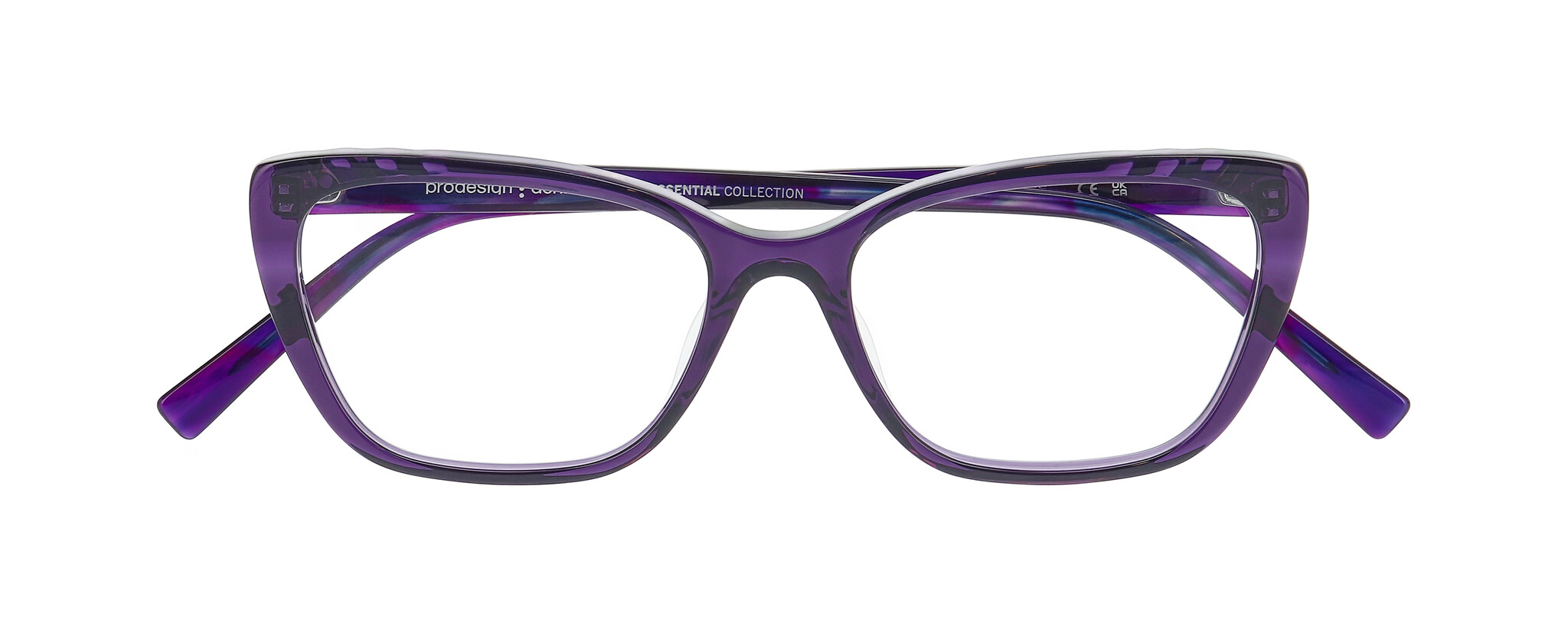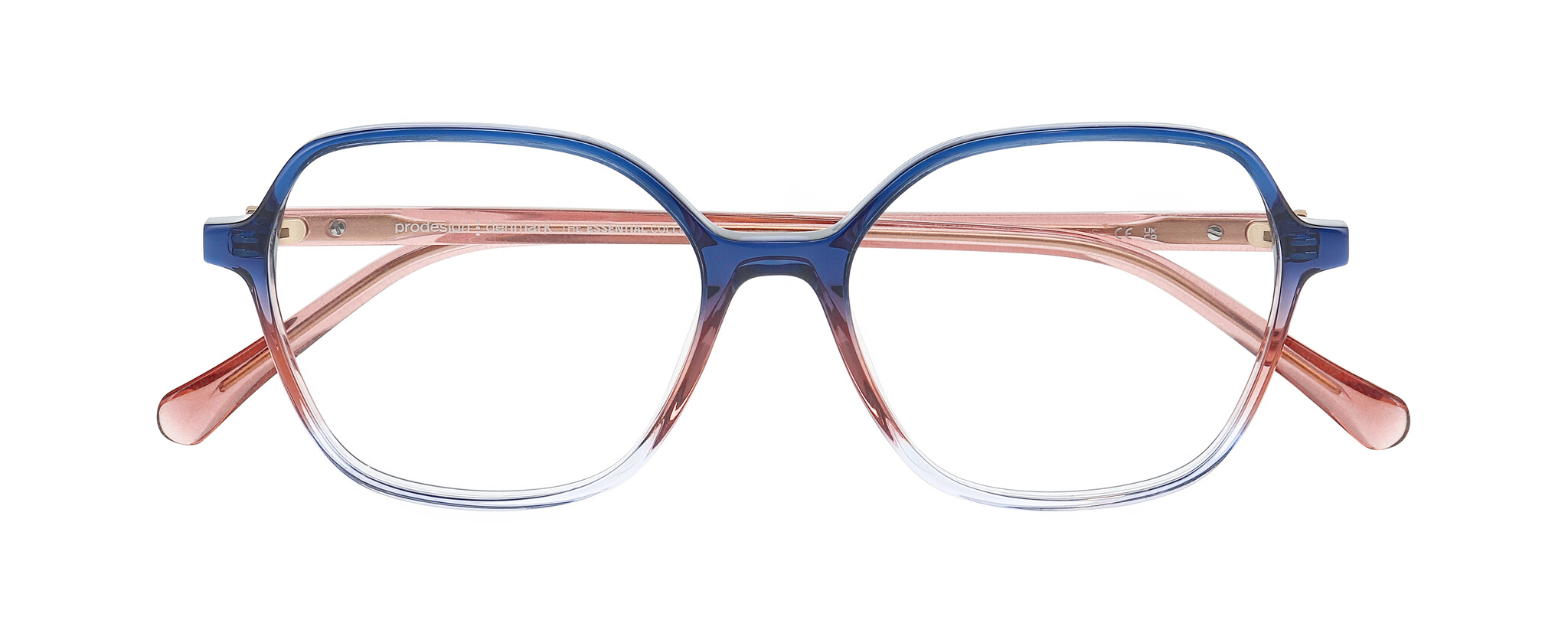 SIGNIFIC is a bold, feminine acetate concept, coming in four expressive shapes — from a cool round (53) to a striking oversized butterfly (56), plus a deep hexagonal and a soft square silhouette. Each frame is crafted in multi-coloured, gradient acetates that bring vibrance without losing sophistication. Look closer and you’ll find Prodesign's signature attention to detail: a custom decorative wire core in shapes 1 and 4, subtle facets around the lens and temple, and a softly rounded temple tip design — every element precisely placed to enhance the colour play and form.