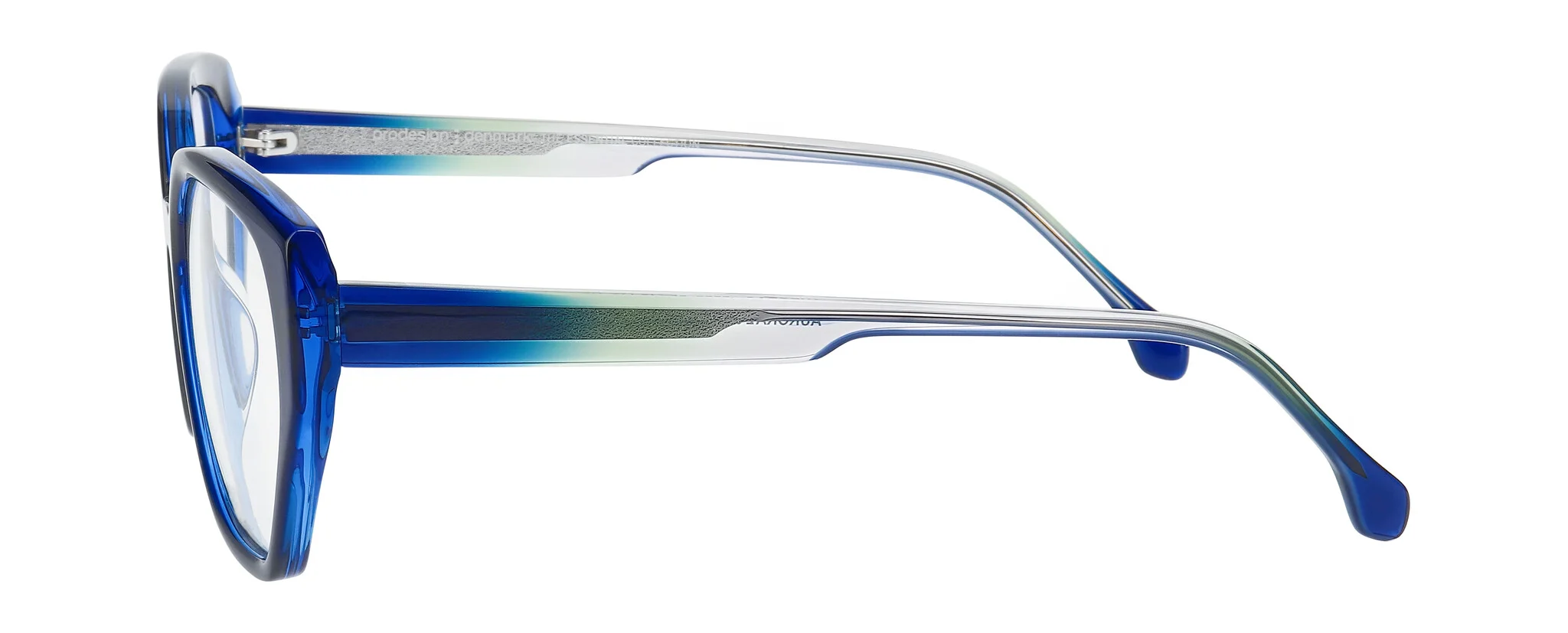 AURORA is inspired by the dynamic colours of the northern lights. Organic movement meets defined edges in a concept where sculptural temples contrast with angular fronts. Layered and gradient acetates are enhanced with precision millings around the lenses, revealing depth and colour intensity. A specially developed wire core follows the natural flow of the temple, reinforcing the fluid design language.
