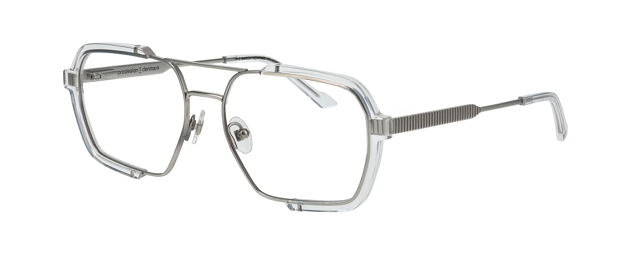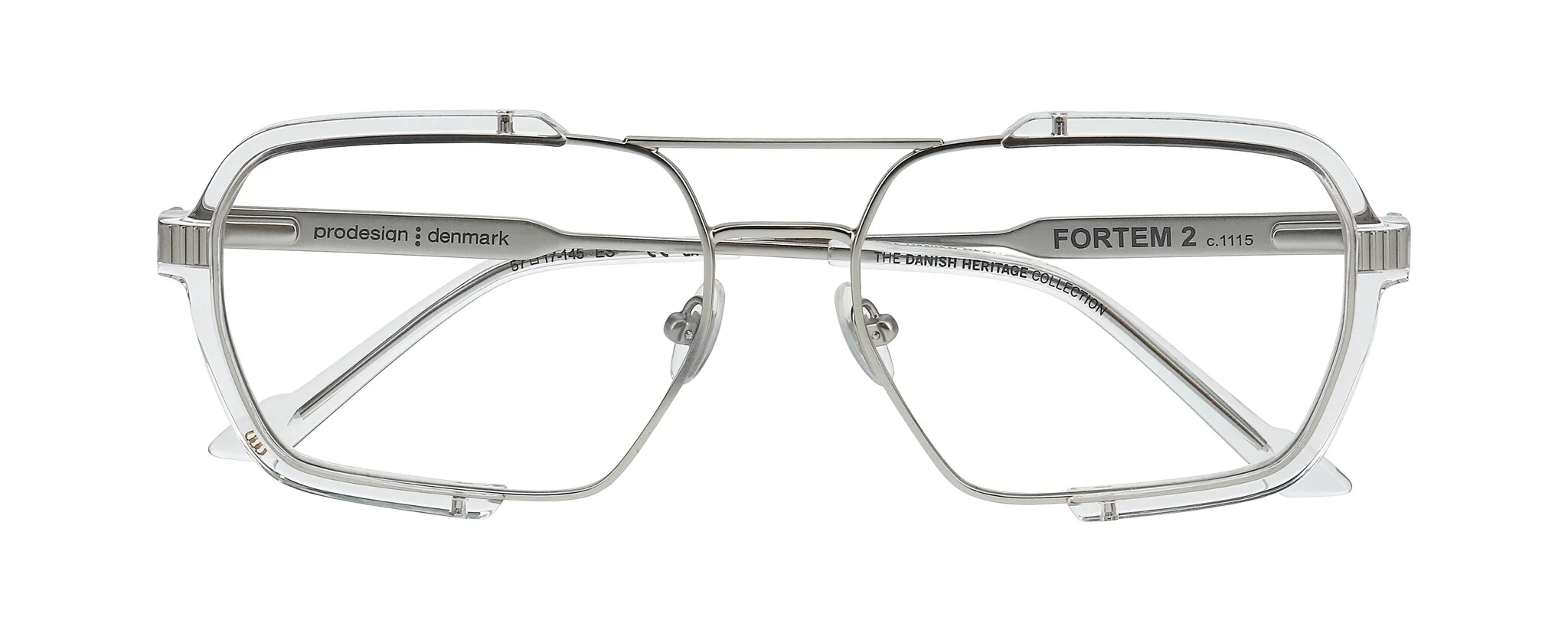 Built in stainless steel and paired with crystal-clear or softly tinted mono acetate, each FORTEM frame has a raw, functional energy. The double bridge structure adds strength and presence, while visible screws and engraved temples speak to the frame’s unfiltered, industrial identity. With two large, confident shapes (56 and 57), FORTEM comes in both optical and sun versions, including smoked and red gradient lenses. It's a design that doesn’t hide its construction – and that’s exactly the point.