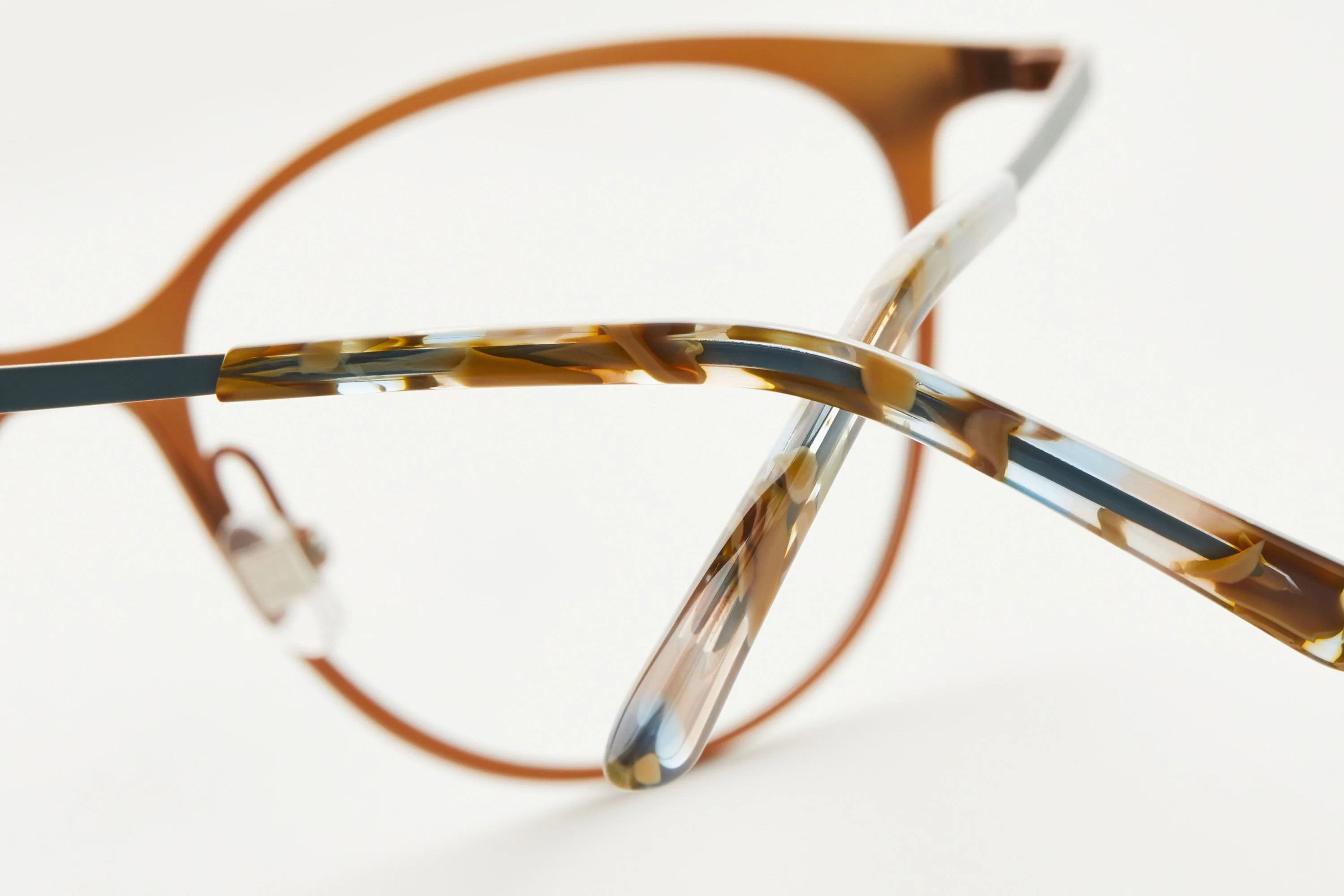 A titanium colour dash! RECESS refers to the step-down detail on the transition from end piece to temple. It’s a two-toned frame – with a unique colour detail on the temple giving everyone the possibility to subtly add a bit of colour to their style. The lightweight titanium frame is matched with an anklet cut of the acetate end tip along with integrated rim locks. A typical Prodesign move where the beauty lies in the detail. Get RECESS with IP plated colours for a stronger and more durable surface.