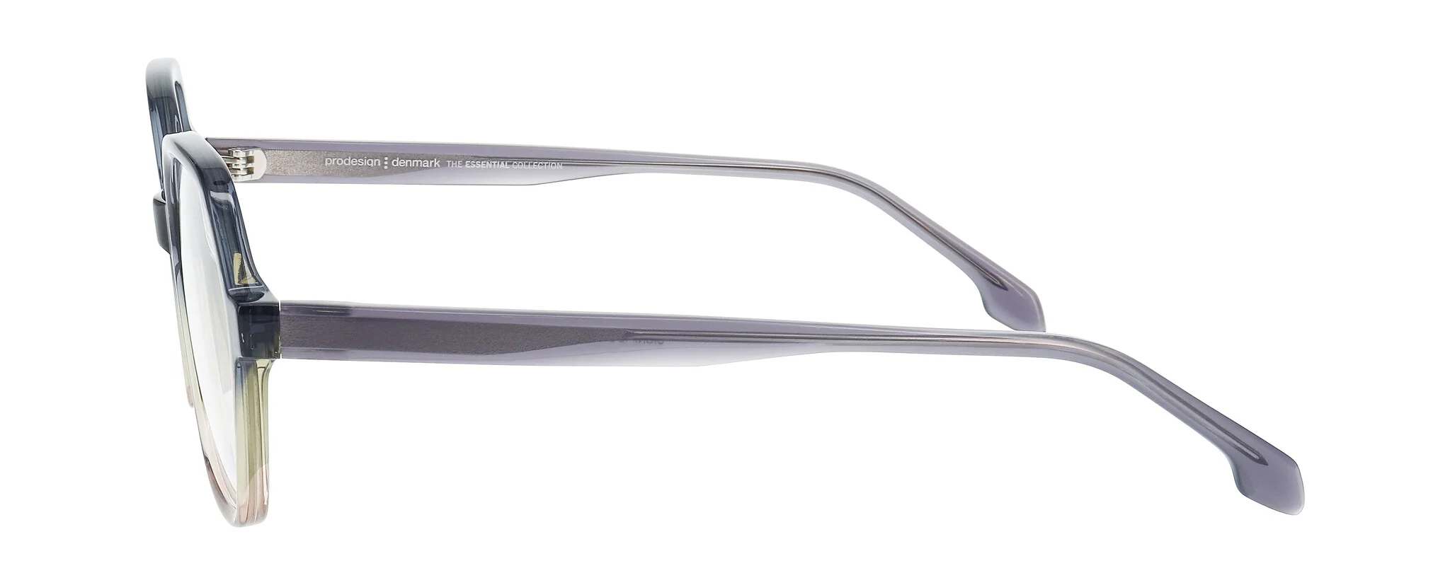 SIGNIFIC is a bold, feminine acetate concept, coming in four expressive shapes — from a cool round (53) to a striking oversized butterfly (56), plus a deep hexagonal and a soft square silhouette. Each frame is crafted in multi-coloured, gradient acetates that bring vibrance without losing sophistication. Look closer and you’ll find Prodesign's signature attention to detail: a custom decorative wire core in shapes 1 and 4, subtle facets around the lens and temple, and a softly rounded temple tip design — every element precisely placed to enhance the colour play and form.